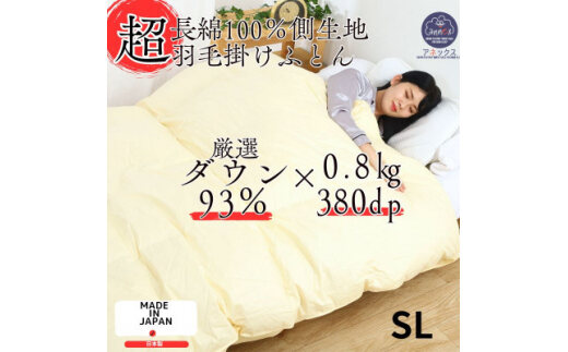 ダウンパワー380dp以上の上質なプレミアムダウンを贅沢に0.8kgも使用した高品質な羽毛布団です。