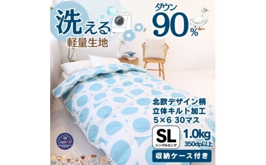 <洗える>羽毛布団シングル 羽毛1.0kg 北欧デザイン ブルー抗菌防臭加工あったかい日本製【1443273】