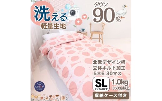 <洗える>羽毛布団シングル 羽毛1.0kg 北欧デザイン コーラル抗菌防臭加工あったかい日本製【1443405】