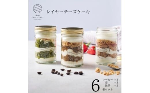 レイヤーチーズケーキ 6個セット コーヒー・苺・抹茶【1670136】