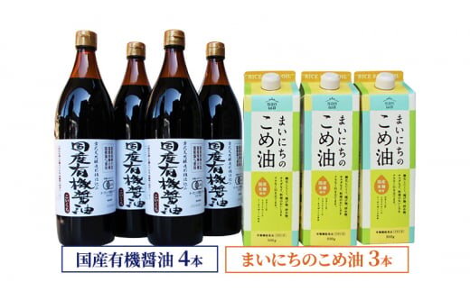 国産有機醤油4本とまいにちのこめ油3本詰合わせ 864