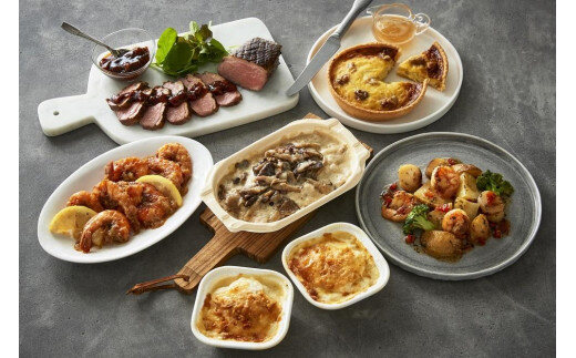 【合鴨のロースト いちじく&バルサミコソース】(220g×1P) 合鴨のロースト料理を、手軽に。合鴨は身をしっとりと仕上げるために、下味や調理法に趣向を凝らしています。ソースにはドライいちじくの果肉をゴロッと入れ、バルサミコ酢の酸味でコク深く上品に。 【ドフィノワ じゃがいもグラタン 2個入り】(200g×1P) スライスしたじゃがいもに、クリームソースとチーズでコク深い味わい。 グラタンよりも少し濃厚なドフィノワは、ほんのりガーリックとチーズの濃厚さを感じる味わい。数種のチーズやパン粉を加えて焼き上げ、香ばしく仕上げています。 ステーキなど肉料理や魚のローストなどの付け合わせにも。 【殻ごとおいしいガーリックシュリンプ】(120g×1P) とりこになるおいしさの特製ガーリックソースが、ワインにもぴったり。殻つきのまま食べられる海老の香りと旨みをしっかり味わえます。レモンを加えた爽やかさにパンチの効いた、ハワイの風を感じる味わいです。 【北海道産帆立と海老のハーブグリル】(150g×1P) 特製ハーブソースの旨みと、ゴロッと素材の魚介を楽しむグリル。香ばしい海老や帆立をガーリックの効いたハーブオイルでまとめた、やみつきになる味わいです。そのままはもちろん、軽く焼いたバゲットにのせればブルスケッタ風にもお楽しみいただけます。 【ポルチーニ香る 5種きのこのリゾット】(250g×1P) 芳醇なポルチーニの香りを、チーズなどを使った濃厚なクリームソースに溶け込ませ、ぶなしめじ、舞茸、椎茸、ブラウンマッシュルームとドライポルチーニ、ベーコンのソテーを加え、食感も香りも楽しめるリゾットに仕上げました。お米は、食感の良い五穀ブレンド米を使用しています。 【4種のチーズとくるみのキッシュ はちみつソース添え】(180g×1P) 4種類のチーズ(ゴーダ、ゴルゴンゾーラ、パルミジャーノレッジャーノ、ラクレット)の、濃厚で香ばしいキッシュ。外はサクッと、中は滑らかに。お好みで別添のはちみつソースをかけるとまろやかに。ワインとの相性もバッチリの、大人の味わいです。 |