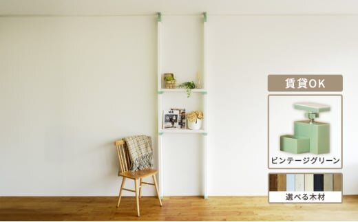 ・LABRICOアジャスター ビンテージグリーン×2セット ・LABRICO棚受けシングル 2セット ・柱:38×89×2700 SPF材 2本 (オーダーカット可) ・棚用材:38×89×568 SPF材 2本 |