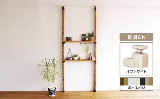 LABRICOアジャスターを使った2×4材(SPF・またはパイン集成材)の柱2本とLABRICO棚受けシングルを使った棚板のセット商品です。