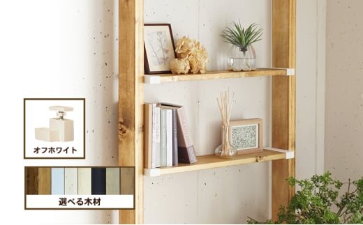 ・LABRICOアジャスター オフホワイト×2セット ・LABRICO 1×8棚受 2セット ・柱:38×89×2700 SPF材 2本 (オーダーカット可) ・棚用材:19×184×548 SPF材 2枚 |