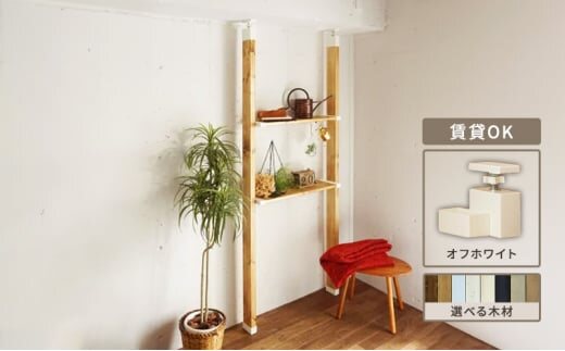 ・LABRICOアジャスター オフホワイト×2セット ・LABRICO 1×8棚受 2セット ・柱:38×89×2700 SPF材 2本 (オーダーカット可) ・棚用材:19×184×852 SPF材 2枚 |
