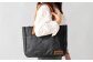 シンプルなデザインに機能性をプラス、天ファスナー付属の横型タウントート。