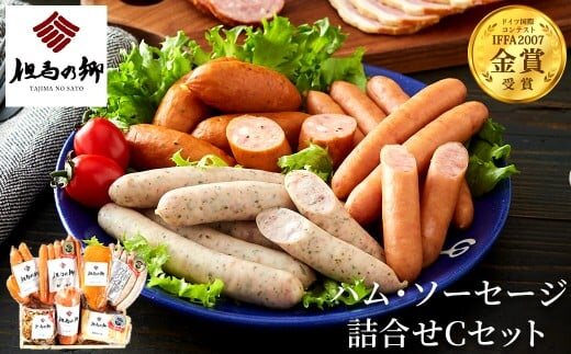 国際コンテストで金賞受賞!ハム ソーセージ 詰め合わせ 7種 1.34kg Cセット(TS-6) / ロースハム ペパーポーク ガーリックウインナー 岩津ねぎウインナー ソフトサラミ 合鴨の燻製 スパイシーフランク IFFA金賞【但馬の郷】