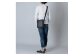 本体前側にファスナーポケット、後ろ側にも半ポケット。内装にファスナーポケット1、半ポケット1。ショルダーベルトは固定式で、長さの調節が可能です。