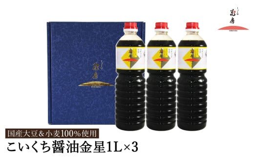 醤油 こいくち醤油金星 1L×3本セット / 醤油セット 濃口醤油 本醸造醤油 まろやか 国産大豆 醤油 濃口 しょうゆ こいくち 調味料 セット 化粧箱入 ギフト【しょうゆの花房】