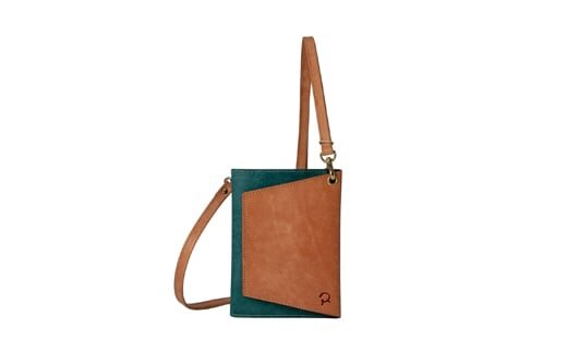本革製財布機能付きスマホショルダー(決済機能オールインワン)(キャメル×ターコイズ)/ イタリア製 本革 革 スマホショルダー スマホショルダーバッグ 財布付き 現金入れ カード入れ 高級 おしゃれ バッグ かばん カバン 鞄 キャメル ブラウン ラフトレザーズ