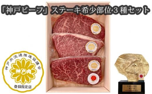 「神戸ビーフ」ステーキ希少部位3種セット(その2)No.251 / 神戸ビーフ ステーキ 希少部位 お肉 肉 にく ニク 牛肉 神戸牛 3種セット 最高級 セット カメノコ ヒウチ マルシン 送料無料 兵庫県