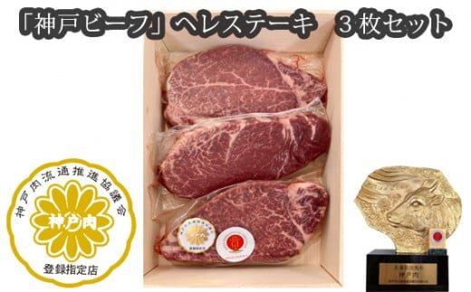 「神戸ビーフ」ヘレステーキ 3枚セット No.254/ 神戸ビーフ ステーキ お肉 肉 にく ニク 牛肉 神戸牛 最高級 ヒレステーキ ヒレ ヘレ 送料無料 兵庫県
