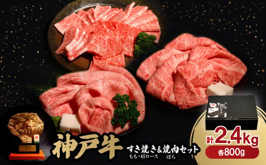 神戸牛すき焼き(もも・肩ロース)&焼肉(ばら)セット 合計2.4Kg(牛脂付き)【1529490】