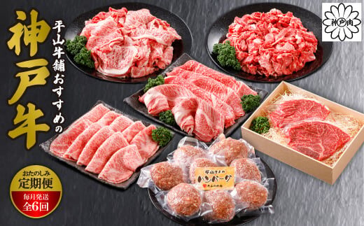 <毎月定期便>平山牛舗おすすめの「神戸牛(神戸ビーフ)」おたのしみ(ギフトに嬉しい化粧箱仕様)全6回【4056751】