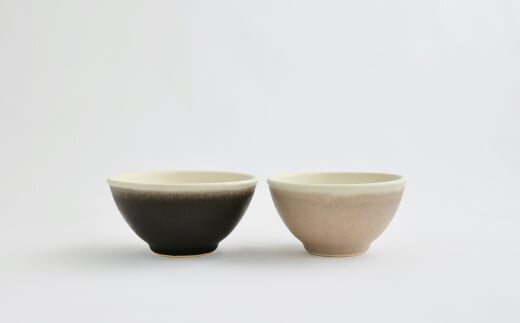 【Awabi ware】掛け分け茶碗 大小ペアセット(大/黒マット・小/ベージュ) 《決済から3ヶ月前後で発送》
