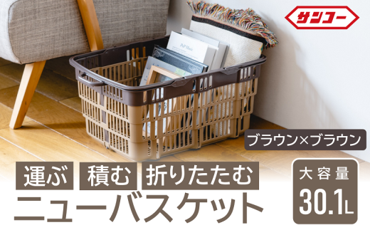 ★SNSで話題★【折りたためる】ニューバスケット(ブラウン×ブラウン) 014SK01N./折りたたみ バスケット ハンドル付き かご 収納 おしゃれ プラスチック 持ち手 アウトドア 小物収納 洗える 折りたためる 買い物カゴ コンテナ ボックス コンパクト 積み重ね 整理 スタッキング アウトドア DIY 工具 サンコー