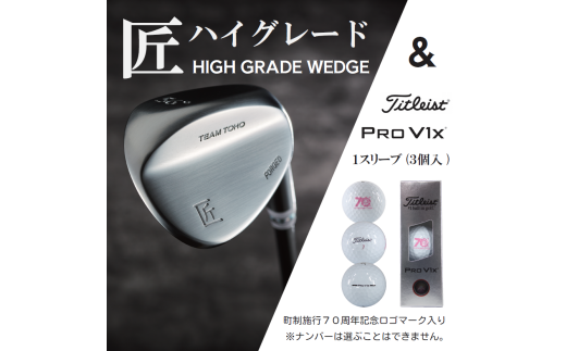 ①「匠」ハイグレードウェッジ 【48度】1本 ★仕様の変更はできません、あらかじめご了承ください。★ シャフト:NS-CI-110 グリップ:高密度樹脂系グリップ 長さ:35インチ 重量:460g ②タイトリストPRO V1x1スリーブ(3個入) |