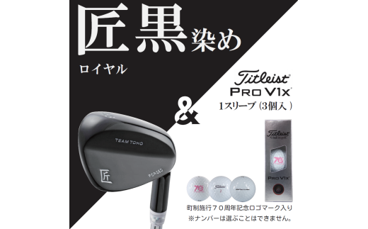 ①「匠」ロイヤル黒染めウェッジ【58度】 1本 シャフト:NS-CI-110 グリップ:オリジナル高密度樹脂グリップ ※仕様の変更はお受けできません。ご了承ください。 ※ソケットのカラーを白から黒に変更しております。あらかじめご了承ください。 ②タイトリストPRO V1x 1スリーブ(3個入) |