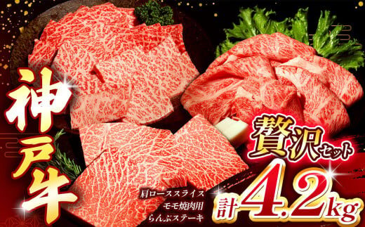 神戸牛贅沢セットA 4.2kg(牛脂付き) Ι 神戸牛 牛肉 お肉 肉 にく モモ ロース スライス 牛脂 ステーキ ジューシー 神戸ビーフ セット 兵庫県 上郡町
