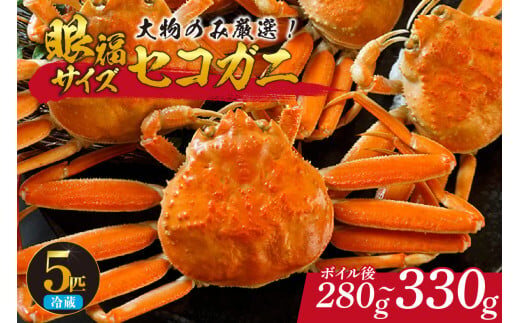 【先行予約】【1匹280g~330gの大物のみ厳選! 眼福サイズ セコガニ5匹セット 冷蔵】 令和7年11月中旬以降、水揚げ次第順次発送予定 濃厚なカニ味噌 やみつきになる内子 外子 絶品 浜茹で 産地直送 鮮度抜群 送料無料 香住 柴山 国産 カニ 松葉ガニ せいこがに メスガニ 親ガニ ふるさと納税 返礼品 おすすめ 兵庫県 香美町 SKG 100000円 カネニ 06-25