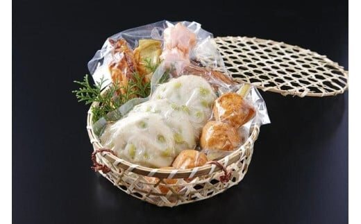 枝豆とさつま揚げ、旨味のマッチングがたまらない「枝豆天」ほか、人気のさつま揚げを厳選したセットです。