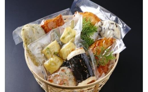 【セット内容】 バターポテト 1/ササガキ天 2/白天 1/ごぼう天 2/玉ねぎ天 2/ゆば巻 2/かに玉ロール 1/花霞 1/チーズ棒 1/生姜天 1 ※原材料の中に、小麦・卵・乳成分・えび・かに・大豆を含みます