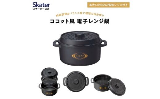 ココット風電子レンジ用鍋 1.6L (ブラック) ライザップ RIZAP (スケーター株式会社)571701 電子レンジ対応 レシピ付き 調理用品 キッチン用品 奈良県 奈良市 なら 8-052