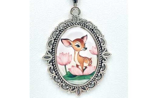 奈良の子鹿とハスのネックレス(ピンク)ジュエリー春日 奈良県 奈良市 なら 6-288