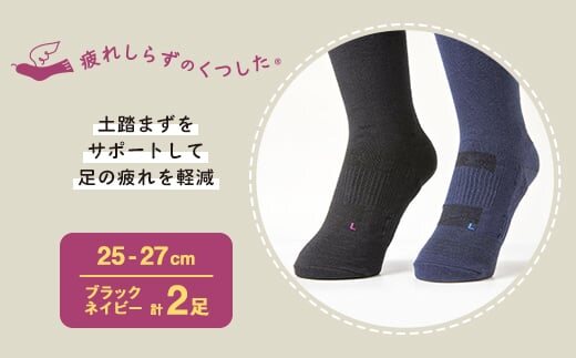 疲れしらずのくつした(クルー丈)ネイビーとブラックの2足セット 25-27cm【1087652】