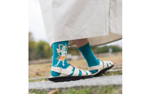 金剛力士あうんソックスは左足に阿形、右足に吽形を配置した金剛…