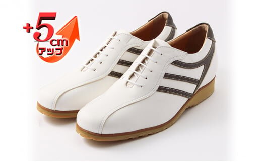 レザースニーカー 本革 カジュアルシューズ 5cmアップ シークレットスニーカー No.997 ホワイト 25.5cm [№5990-7939]0325