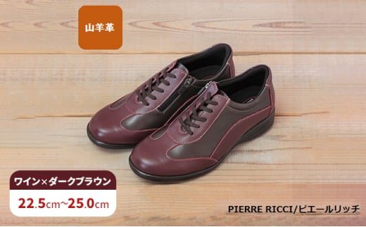 【PIERRE RICCI】ピエールリッチ やわらか山羊革5E快適軽量レディースシューズ ワイン×ダークブラウン(婦人靴)23.5cm [№5990-7308]0224