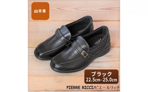 【PIERRE RICCI】ピエールリッチ 5E 山羊革サッとはけるレディースシューズ 甲ゴムタイプ ブラック(婦人靴)23.5cm [№5990-7314]0225
