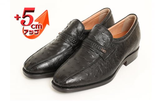 オーストリッチ革 ビジネスシューズ 紳士靴 スワローモカ 5cmアップ 4E ワイド No.67 ブラック 26.5cm [№5990-7668]0279
