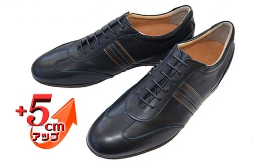 レザースニーカー 本革 カジュアルシューズ 5cmアップ シークレットスニーカー No.899 ブラック 24.0cm [№5990-7676]0281