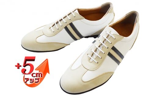 レザースニーカー 本革 カジュアルシューズ 5cmアップ シークレットスニーカー No.899 ホワイト 26.0cm [№5990-7694]0283
