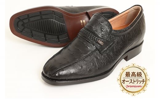 オーストリッチ革 ビジネスシューズ 革靴 本革 紳士靴 スワローモカ 4E ワイド No.1267 ブラック 24.0cm [№5990-7698]0284