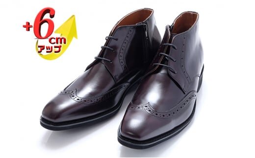 ビジネスブーツ 本革 革靴 紳士靴 ウイングチップ 6cmアップ シークレットブーツ No.1302 ワイン 26.0cm [№5990-7723]0287