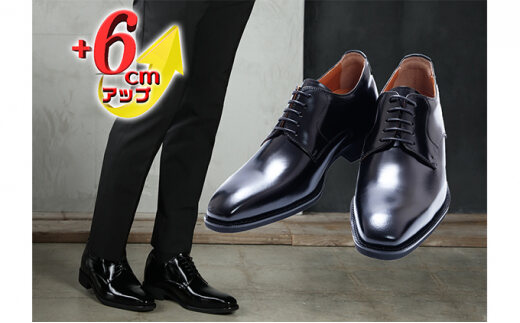 ビジネスシューズ 本革 革靴 紳士靴 外羽根プレーン 6cmアップ シークレットシューズ No.1931 ブラック 25.0cm [№5990-7749]0291