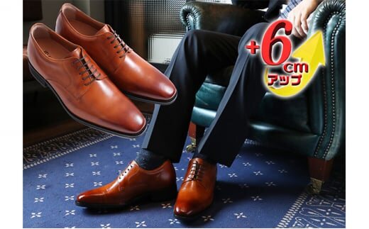 ビジネスシューズ 本革 革靴 紳士靴 外羽根プレーン 6cmアップ シークレットシューズ No.1931 キャメル 24.0cm [№5990-7761]0293