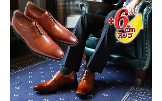 ビジネスシューズ 本革 革靴 紳士靴 外羽根プレーン 6cmアップ シークレットシューズ No.1931 キャメル 25.0cm [№5990-7763]0293