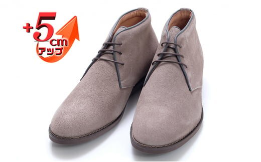牛革 本革 日本製 ベロア チャッカーブーツ 5cmアップ カジュアルシューズ シークレットブーツ 撥水 No.850 グレー 25.0cm [№5990-7916]0322