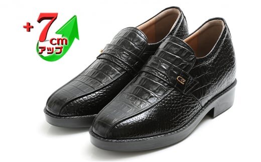 ビジネスシューズ 本革 革靴 紳士靴 牛革クロコ調スワローモカ 7cmアップ シークレットシューズ No.236 ブラック 26.0cm [№5990-8073]0342