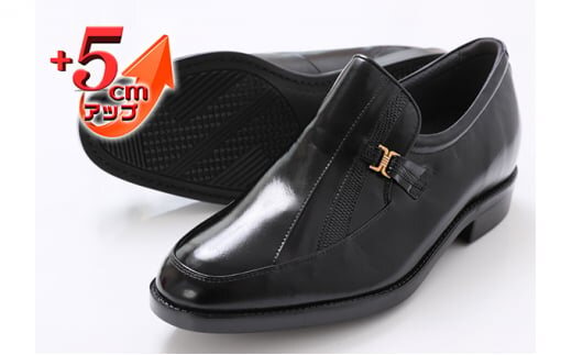 カンガルー革 ビジネスシューズ 紳士靴 Uモカ スリッポン 5cmアップ 4E ワイド No.635 ブラック25.0cm [№5990-8085]0344