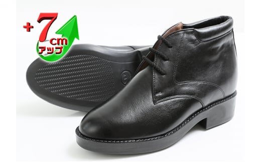 ビジネス 本革 革靴 カジュアル デザートブーツ 紳士靴 7cmアップ シークレットブーツ No.350 ブラック 24.0cm [№5990-8181]0358