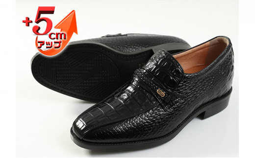 クロコ調牛革 ビジネスシューズ 紳士靴 5cm シークレットシューズ 4E ワイド No.636 ブラック 25.5cm [№5990-8212]0362