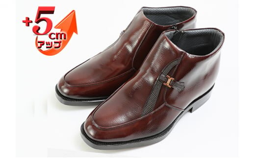 ビジネスブーツ 紳士靴 デザインモカハーフブーツ 5cm シークレットブーツ 4E ワイド No.763 ブラウン 25.5cm [№5990-8247]0367