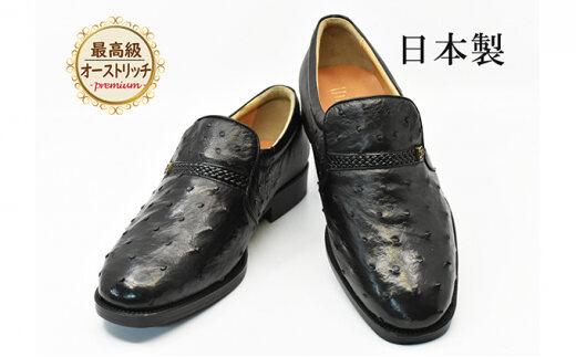 オーストリッチ革 ビジネスシューズ 革靴 本革 紳士靴 プレーン 4E ワイド No.1265 ブラック 25.5cm [№5990-8254]0368