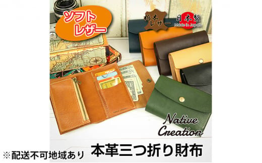 Native Creation 三つ折り財布 NC3736 栃木レザー【納期1~3カ月】 ※全7色からお選びください。 |